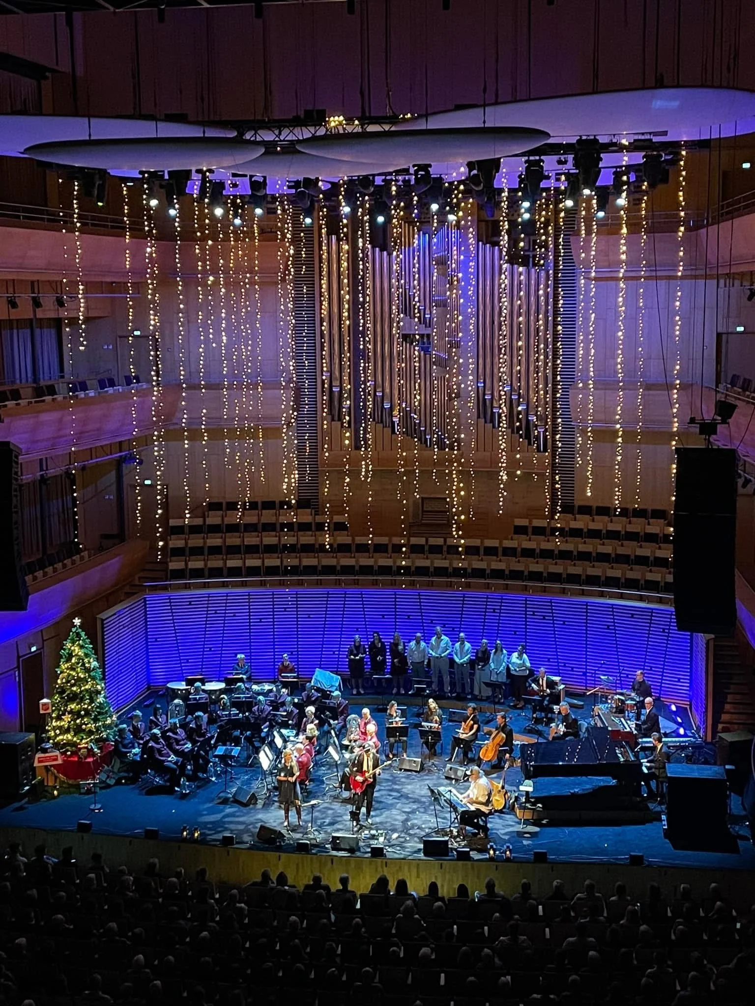I 2024 fikk jeg gleden av å synge flere sanger, blant annet min egen “God delivered Peace”, under Frelsesarmeens tradisjonsrike julekonsert i storstua Fartein Valen i Stavanger konserthus. Selvsagt gjevt! Men enda gjevere å ha en kapellmester som Thor-Erik Fjellvang som vet å utnyttet band, strykere og korister til fulle. Kransekaka? Trombonist “Nilas” Gravdal på Go tell it on the mountain!